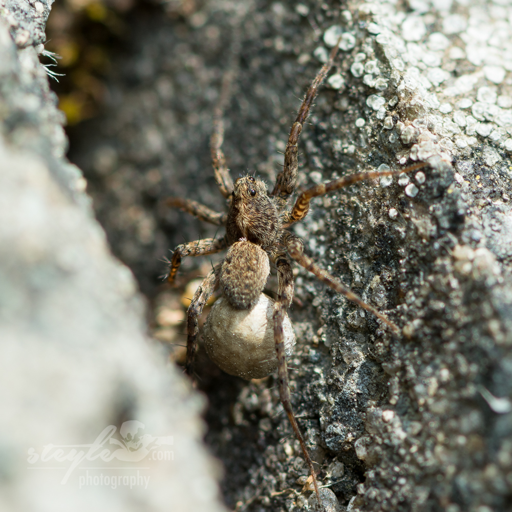 Wolffspinnen spinnen keine Netze und lauern im Gegensatz zu anderen Spinnen ihren Opfern auf. Sie sind extrem schnell. Hier trägt ein Weibchen seinen Nachwuchs als Kokon auf dem Rücken. Dieser wird an speziellen Spinnwarzen befestigt.